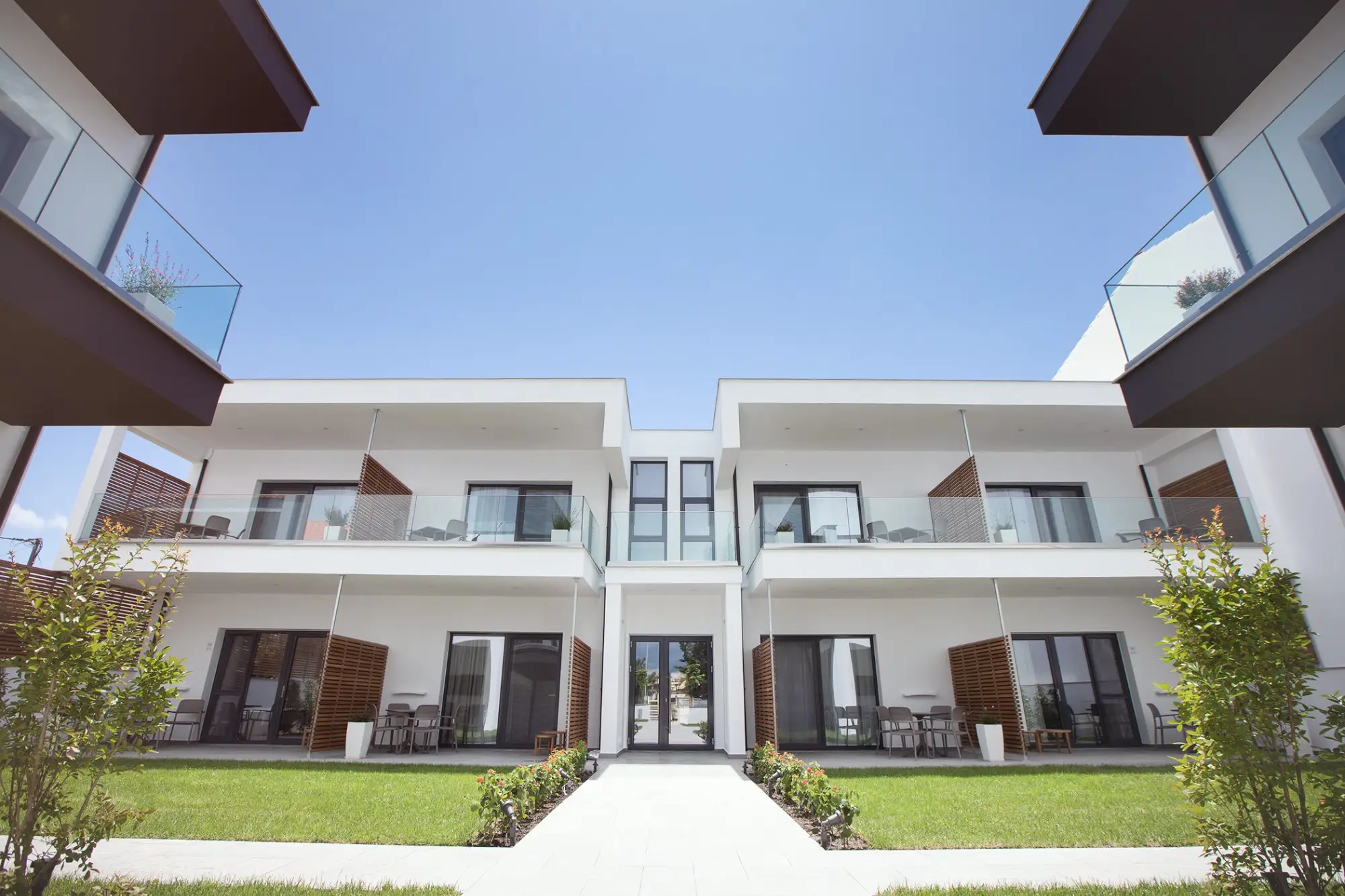 Our modern lounge, green courtyard, and private balconies offer plenty of space for families to relax and enjoy time together. The safe, open-air environment is perfect for children to play while parents unwind — making Suites Sole an ideal base for a family holiday near Keramoti’s beautiful beaches and the Thassos ferry.